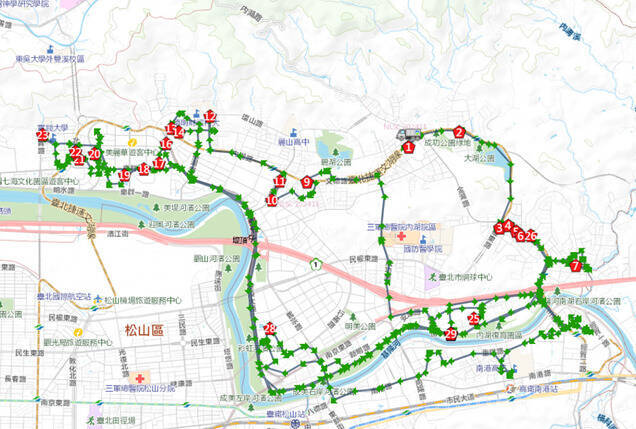 台北市環保局追蹤GPS車輛軌跡。示意圖非違規車輛軌跡。(台北市環保局提供)