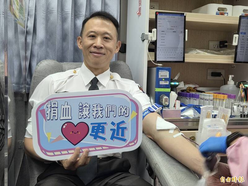 嘉義市消防局副局長李宗儒響應捐血。(記者王善嬿攝)