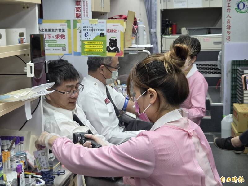 多名消防、義消弟兄捐血助人。(記者王善嬿攝)