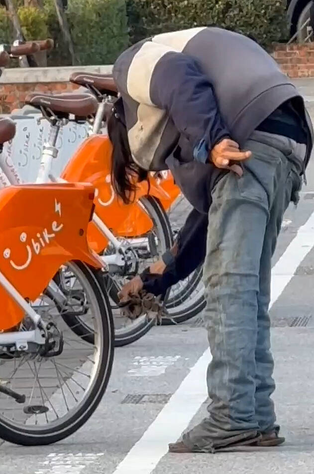 昨日有民眾反映,指稱在屏東市勝利公園旁的U-Bike站點,發現一名中年男子行為怪異。目擊者拍攝指出,該男子彎腰對著多輛腳踏車輪胎處不斷撥弄,疑似手持利器刺破胎壁,且在「割完」後還刻意用手確認輪胎狀況。當時現場有不少帶著小孩的家長,見狀原本想上前制止,但看見對方疑似持有尖銳物品,擔心發生隨機攻擊事件,嚇得不敢靠近,只能隨後拍下影片報警,並心有餘悸表示,「就怕類似張文的暴力事件再次上演!」