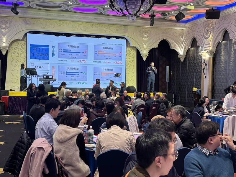 台中市第四警分局今天表示,派出所員警及志工把握年終尾牙旺季,主動出擊走進婚宴餐廳、企業尾牙會場進行反詐宣導,將防詐觀念直接送到餐桌前,讓宣導不再「聽過就忘」,吃飯也能學防詐,民眾填問卷答對題目,即可獲得熱門餐廳Buffet餐券,吸引大批民眾排隊參與,在歲末年終試手氣,氣氛熱絡獲好評。