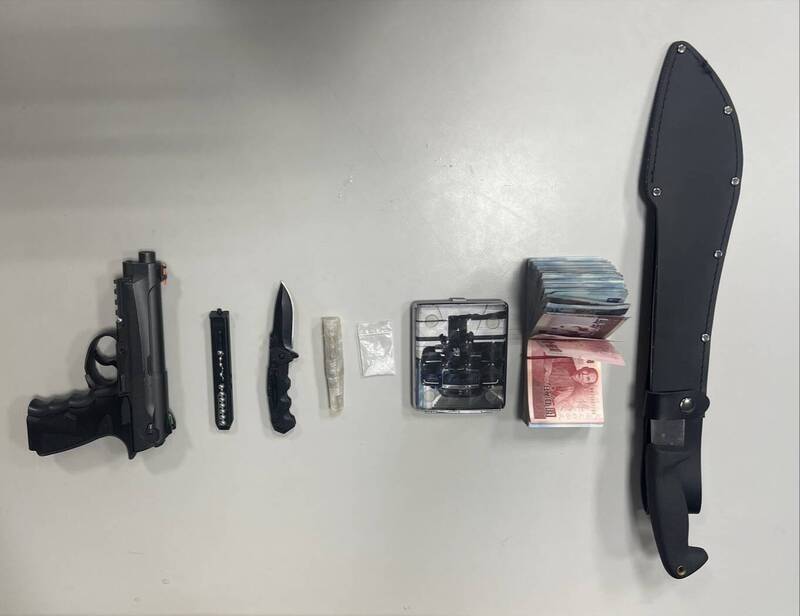 警方查獲毒品、瓦斯槍、開山刀。(讀者提供)