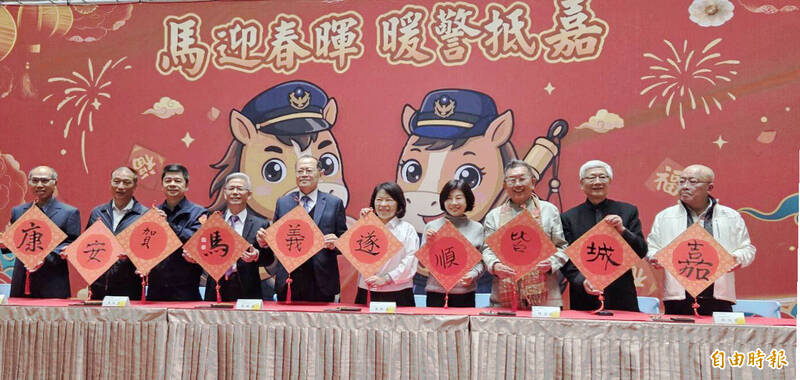 嘉義市長黃敏惠、市警局長陳明志今偕同警政署警政委員張樹德、議長陳姿妏、順億關係企業總裁林文村、鈺通大飯店董事長黃國芳、嘉義市警察之友會理事長陳建言,及書法大師中華民國書法教育學會理事長楊旭堂、前市府地政處長饒嘉博、嘉義市議會總務主任吳富源等人,現場揮毫書寫「嘉城皆順遂,義馬賀安康」,隨後由書法大師揮毫贈送春聯給民眾,現場喜氣洋洋。