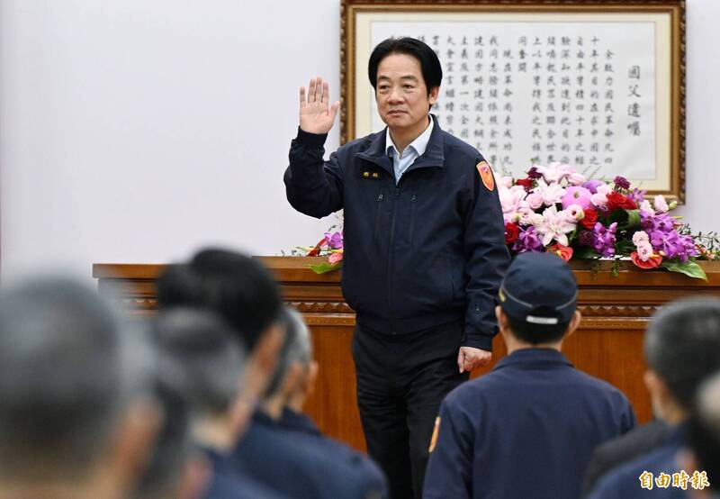 賴清德致詞說,回顧去年年底台北市發生隨機襲擊事件,警察同仁在危急情境下迅速行動,與熱心市民共同制止暴力,隨後更在公共場所與大眾運輸系統加大見警率,讓國人倍感安心。展望今年,面對國人在意的治安問題,政府將持續以長期方針策略,一一破解打詐、毒品、黑幫及社會韌性等四大挑戰。