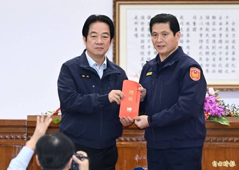 總統賴清德頒發加菜金給台北市警察局長林炎田(右)等人。(記者廖振輝攝)