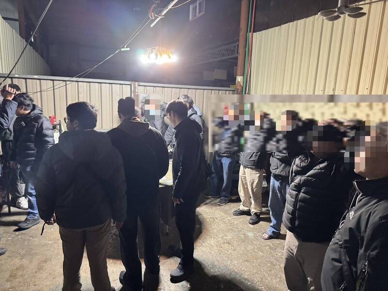 新北市樹林警分局查獲轄區鐵皮違章工廠,過年前大開天九牌賭場,還開設KTV招待所攬客,警方逮獲主嫌吳姓夫妻檔及15名賭客,全案依法送辦。(記者吳仁捷翻攝)