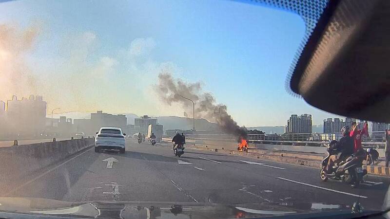 警方表示,兩人因公務前往新北市土城區,昨日下午4點29分回程行經浮洲橋時,發現外側機車道有輛電動機車疑似發生事故起火燃燒,熱心民眾使用滅火器意圖撲滅,但火勢仍持續擴大。