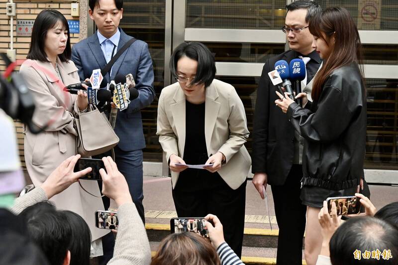 立委徐巧芯的大姑劉向婕5日下午在高等法院外舉行記者會,為其所涉司法案件與衍生爭議,向社會大眾道歉。(記者叢昌瑾攝)