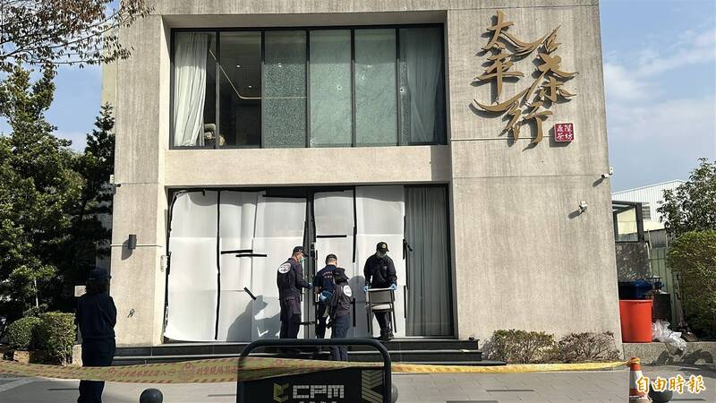 發生槍擊案的茶行,警方現場鑑識採證。(記者許國楨攝)