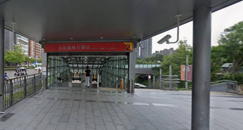 台北捷運大安森林公園站男廁傳出火警,火勢由站務人員撲滅,幸無人員傷亡,而警方已調閱監視影像追查,過濾可疑人士進出,朝縱火方向偵辦。(擷取自google地圖)