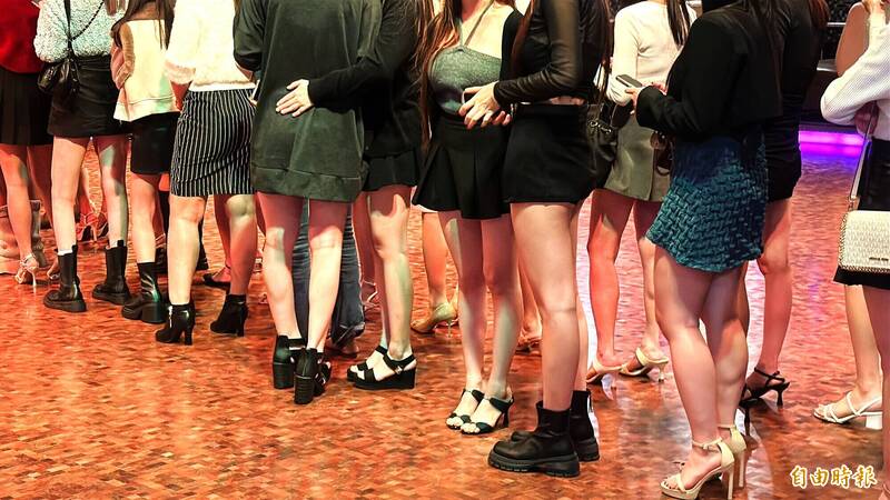 高雄警深夜前往舞廳臨檢,舞小姐秀辣腿排排站接受身分檢查。(記者許麗娟攝)