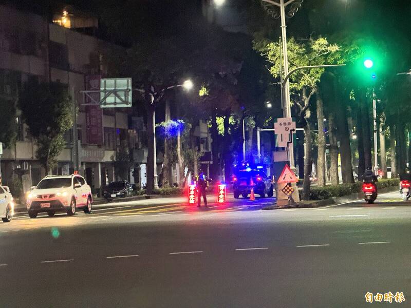 警方於路口進行閉鎖式道路路檢,防堵酒駕及不法情事。(記者許麗娟攝)