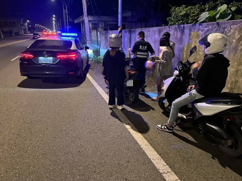 警方攔檢取締清晨聚集競速的飆車族。(記者余瑞仁翻攝)