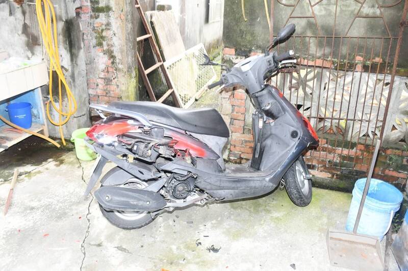 停在屋前的機車也被砸壞。(警方提供)