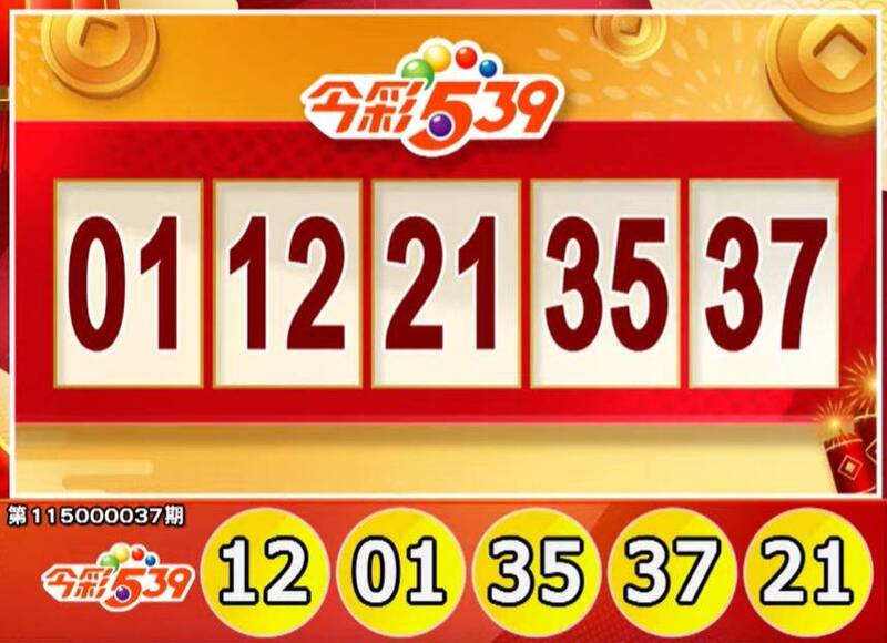 39樂合彩:01、12、21、35、37。