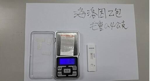 警方扣下顏男持有的海洛因。(記者徐聖倫翻攝)