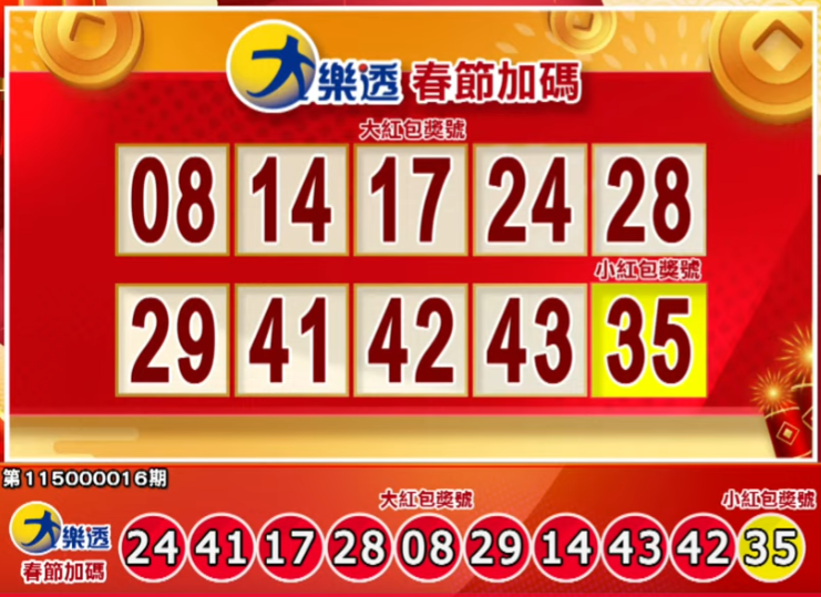 小年夜來對獎!2/15大樂透、大小紅包、今彩539、3星彩、4星彩獎號出爐