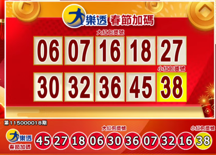 初一來對獎!2/17大樂透、大小紅包、今彩539等各獎號出爐