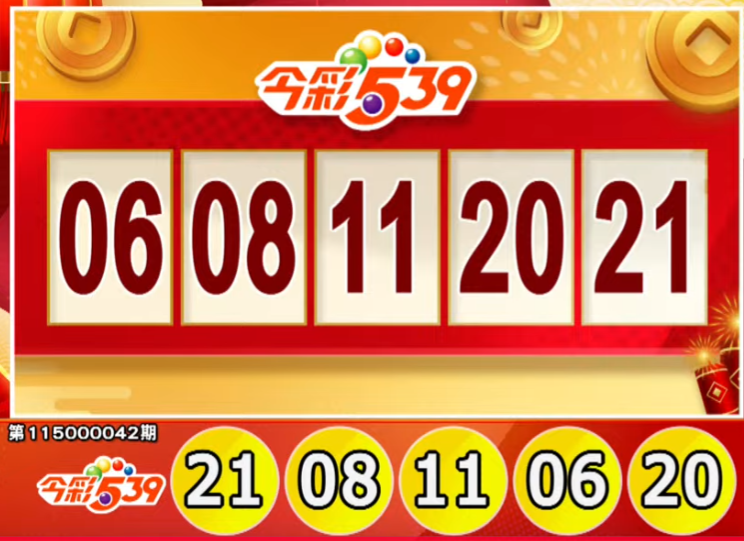 今彩539:06、08、11、20、21。
