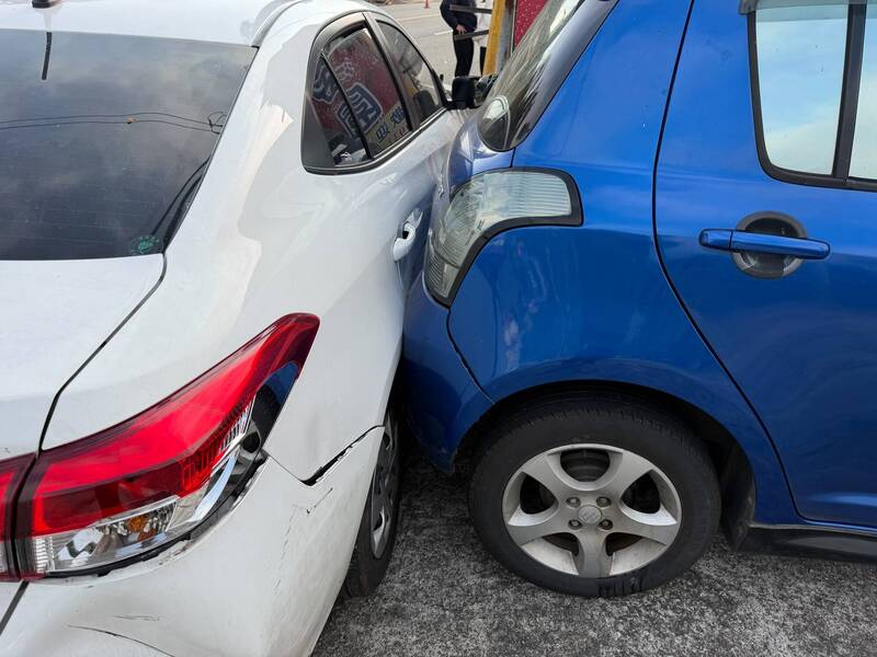 羅翁駕駛轎車,突然撞擊路旁的電線桿,並波及停於路旁的轎車。(圖由警方提供)