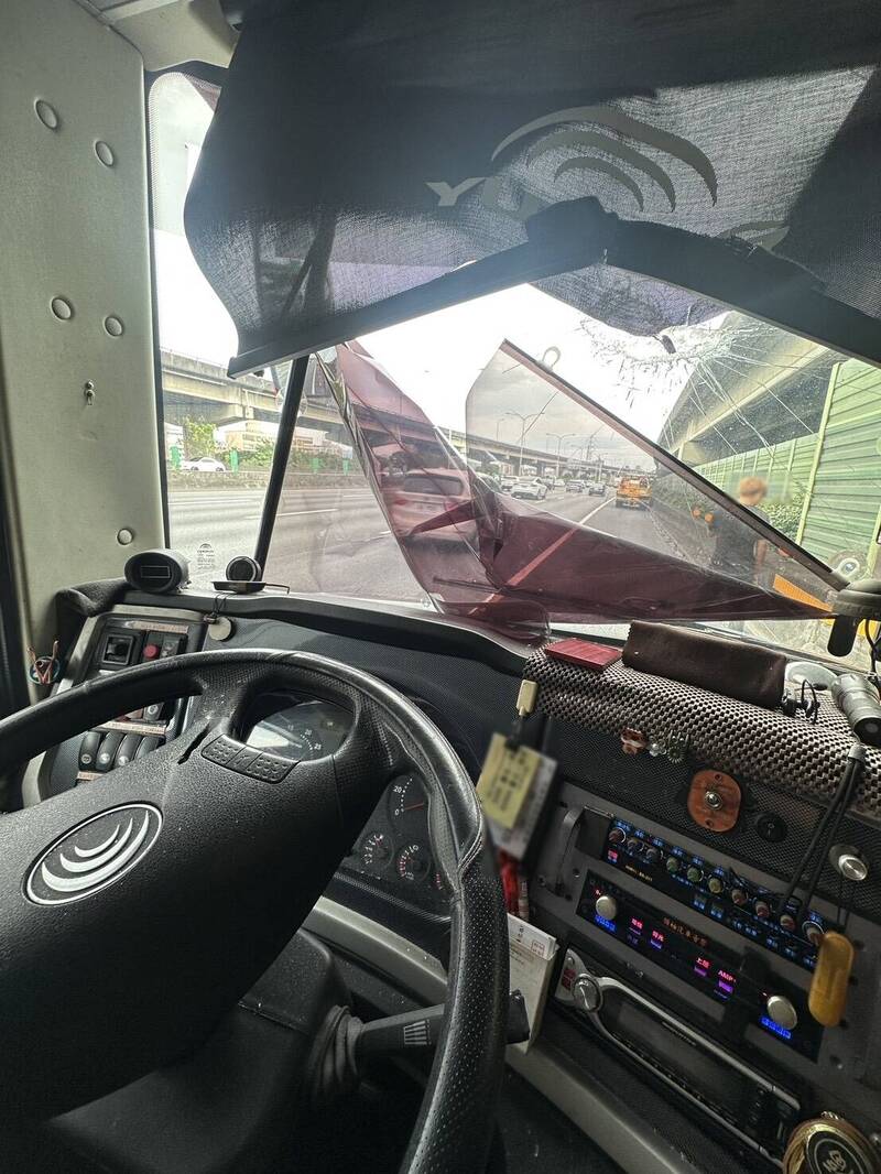 國道驚魂!鐵片射穿擋風玻璃 客運駕駛負傷穩住車況護44乘客