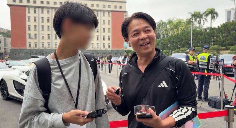 為了趕上這場車壇盛事,林姓父親今日清晨6點便帶著兒子從台中驅車出發。(記者劉詠韻攝)