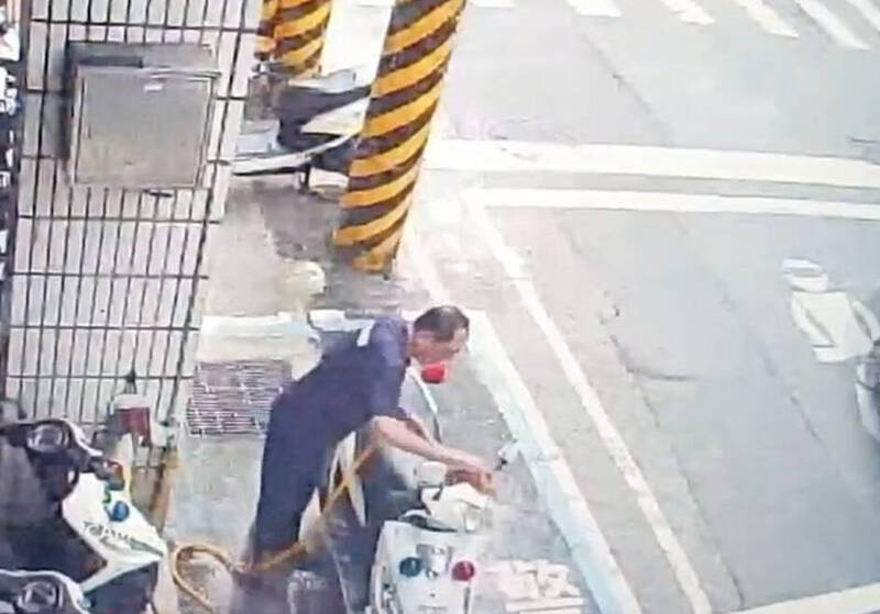 忠二路派出所長徐紹文兩天內,幫所內同仁清洗30多輛機車。(記者吳昇儒翻攝)