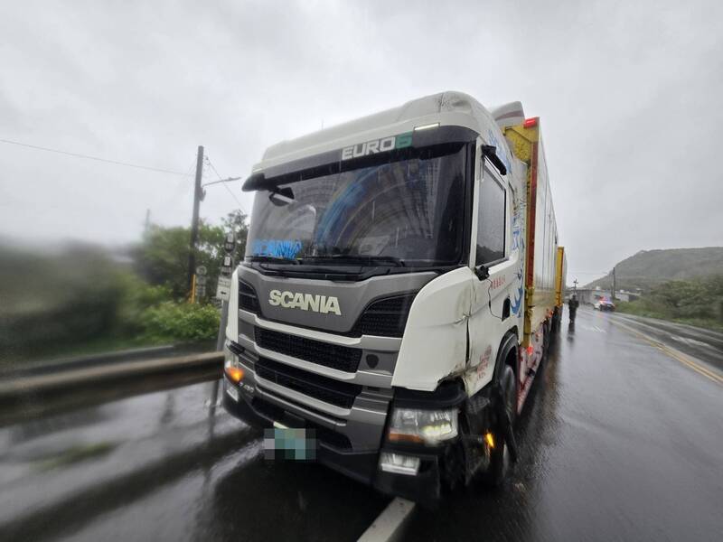 47歲徐姓貨櫃車司機今日上午9時40分,從宜蘭開往基隆方向行經濱海公路105公里處時,疑因急煞打滑,衝到對向車道,撞倒民宅外雨棚,造成2輛機車被壓損,所幸當場無人員傷亡。警方依規定對徐男進行酒測,初步排除有酒駕情形,後續賠償情形,則由雙方協調。