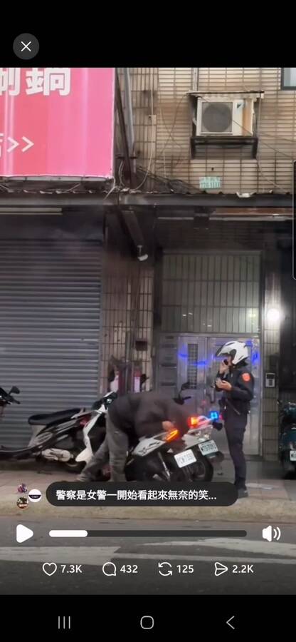 據悉,吳男今上午7時許騎車行經泰山區明志路三段,他因為沒有戴安全帽,被林口警分局明志派出所女警攔下準備開單。吳男疑似不甘願被開單,理智突然斷線,用頭猛撞機車自殘,動靜之大路過民眾紛紛駐足觀看,並錄下影像發上社群。
