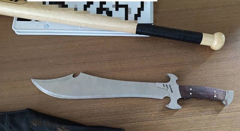 紀嫌持有的長刀和球棒。(屏東警分局提供)