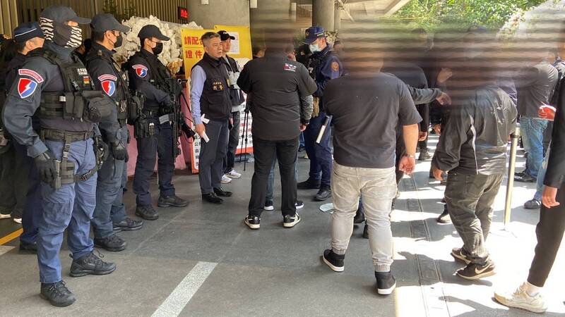台北市警局為防制暴力衝突及黑幫氣焰,昨日出動近60名警力到場強勢執法,總計盤查300多人,並當場逮捕2名通緝犯。(記者鄭景議翻攝)