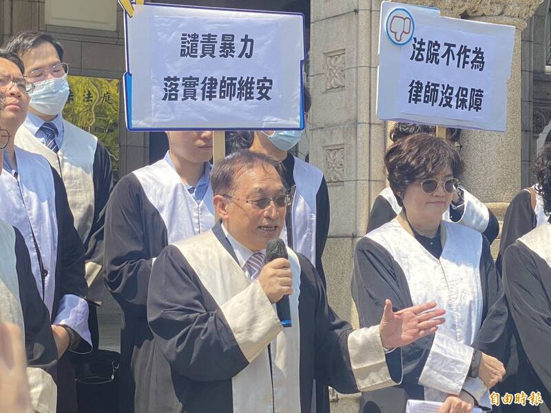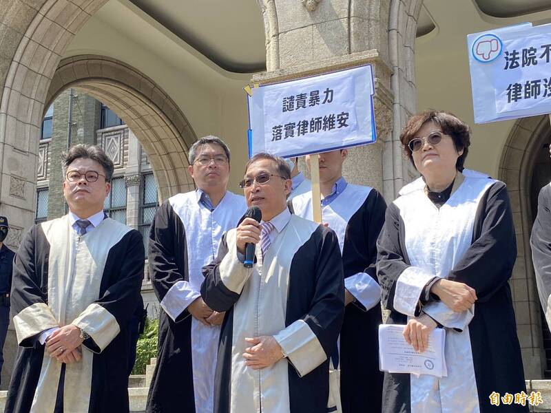 台中一名46歲林姓女子,因涉傷害3名女律師案昨開庭,台中律師公會到場聲援,未料開庭前,林女竟在走廊掌摑理事長吳中和。全國律師聯合會今號召律師到司法院抗議,昨天遭掌摑的吳中和到場還原昨天狀況,並表示2月林女就在法庭上和法官揚言要殺他,但台中地院及法官沒任何處置,若當時採強制處分,後續暴力事件恐可避免,如今台中地院仍不對林女採取任何強制處分,放任她離開。