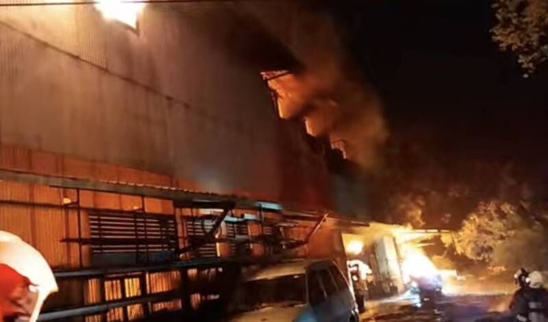 今日凌晨2時7分許,研究院路4段21巷內的一處鐵皮工廠發生火警。由於現場為易燃的鐵皮結構且內部堆放大量加工資材,火勢迅速蔓延呈現全面燃燒。台北市消防局不敢大意,立即調派各式消防車39輛、救護車4輛,並動員112名消防人員趕往灌救。為了強化偵查與滅火效率,現場更投入救災機器人1架及無人機1架進行高空監控。