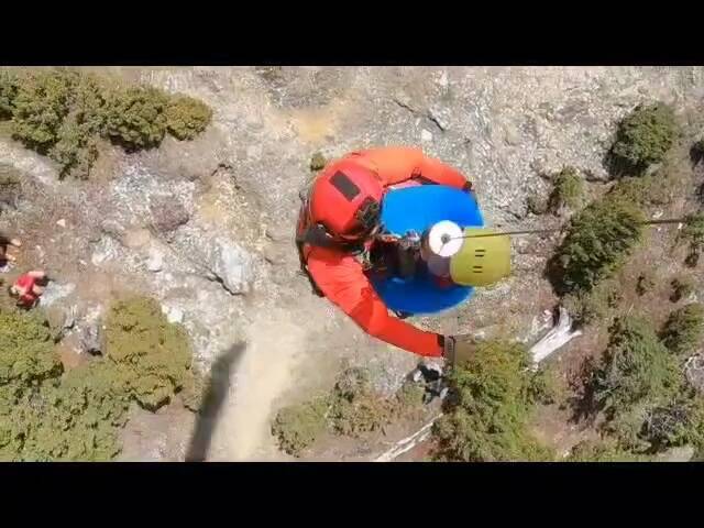 直升機長完成高、低空偵察、馬力檢查、風險評估及救援提示後,由特搜員游皓中以繩索扣環垂掛出艙,將傷患吊掛上機後定向飛往花蓮,降落花蓮德興棒球場後由救護車轉診送醫。