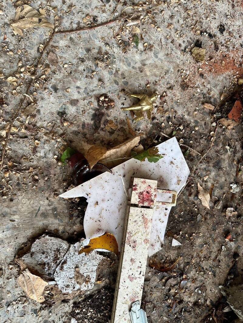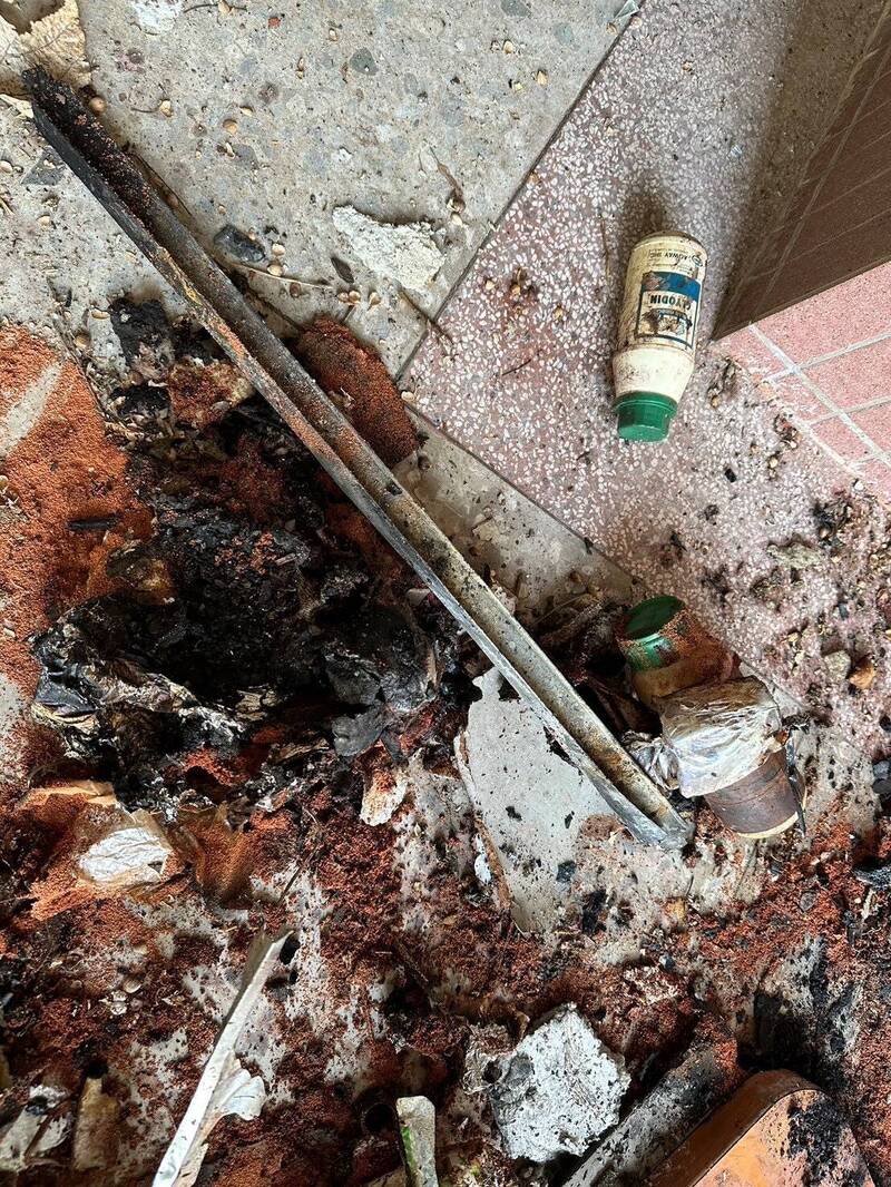 廢棄校園爆炸案現場留下的餘燼。(竹崎警分局提供)