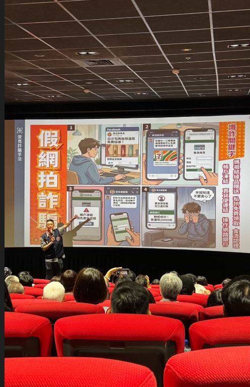 萬華警包場觀影解析詐騙話術強化民眾防詐意識。(記者劉慶侯翻攝)