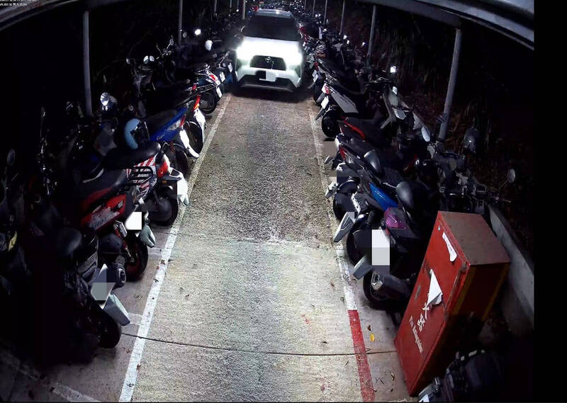 柯姓男子酒後開車進入機車停車場,碰倒多輛機車。(圖由警方提供)