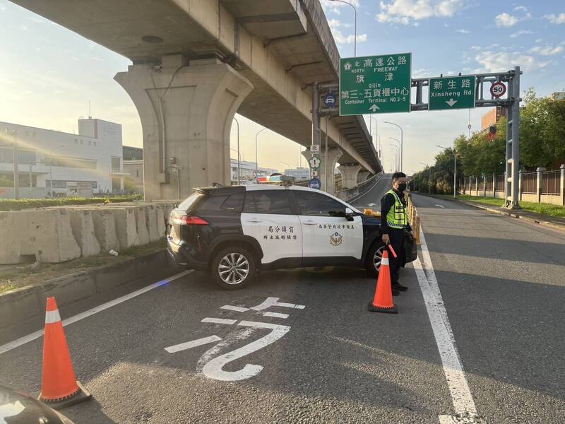 前鎮分局前鎮街派出所清晨5時50分許獲報新生路高架橋發生交通事故,員警馳赴現場管制疏導,防止二次事故發生。