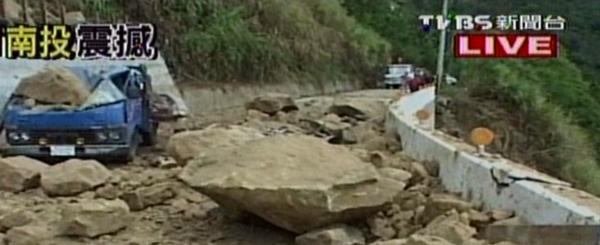 南投縣國姓鄉的產業道路因強震使巨石掉落,砸重1台入山工作的貨車,車頭全毀,造成3人受傷送醫,其中1名男子雙腿嚴重骨折、1名男子受到擦傷,另1名女性則是腰部受傷。
