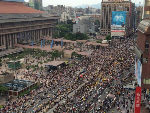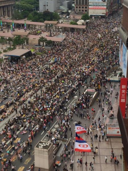 「停建核四、還權於民」大遊行,民眾全面佔領忠孝西路。(記者趙世勳攝)