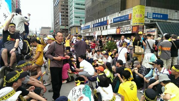 反核民眾高喊:「警察先生,不要成為政權的工具,謝謝你們。」呼籲警方不要阻擋,群眾則直接跨過管制區車道,第一排群眾手勾手,以縝密隊形讓警方難以阻擋,後方群眾掌握時機強跨管制區,將忠孝西路去向、來向四個車道全部佔領。
