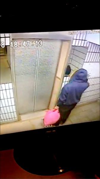 歹徒穿著深色帽T、長褲。