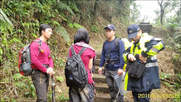 台北市55歲詹姓婦人(左二)本月23日至宜蘭縣桃源谷登山,但是下山後走了2公里多就迷路,第3天往上爬才到主步道獲救。(記者簡惠茹翻攝)
