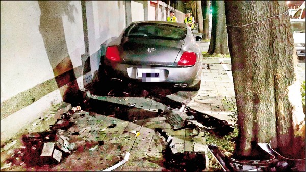 賓利被撞上人行道。(記者鄭景議翻攝)