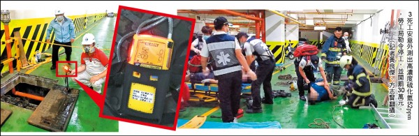 勞檢處強調,業者未依作業規定先通風、換氣,即讓3名工人先後下去污水槽;硫化氫具窒息和刺激性,屬於無色、臭蛋味氣體,一旦遇上高濃度環境時,影響人體中樞神經系統。