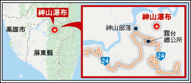 天氣熱壞了,南台科技大學黃姓(21歲)、劉姓(20歲)2名男大生,跑到禁止戲水的屏東霧台神山瀑布玩水消暑,結果不幸雙雙溺斃。霧台鄉長杜正吉說,神山瀑布下游溪流時有落差,稍不留意就容易從平緩區跌到深水區,加上是水源管制區,全長1公里的河道完全禁止戲水,不能進入,2處入口都設有禁止標誌。