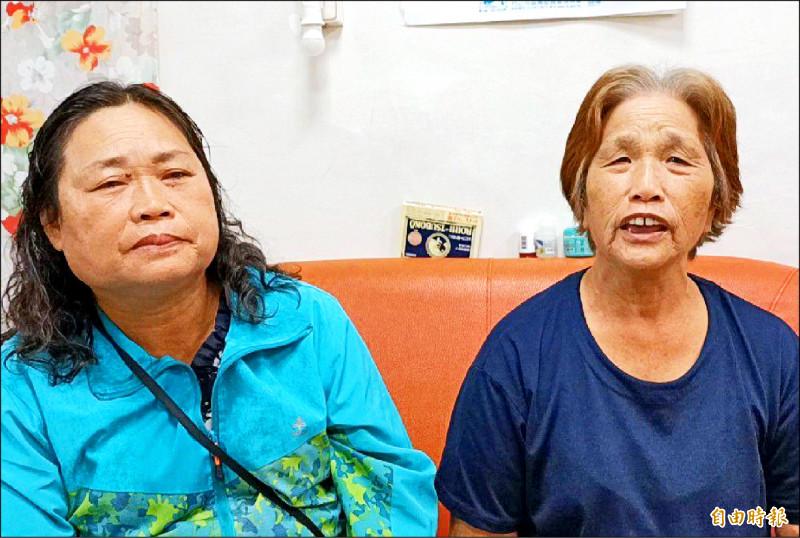 章文德妻子〈右〉與小門村長章娥,高興章文德終於落葉歸根。(記者劉禹慶攝)