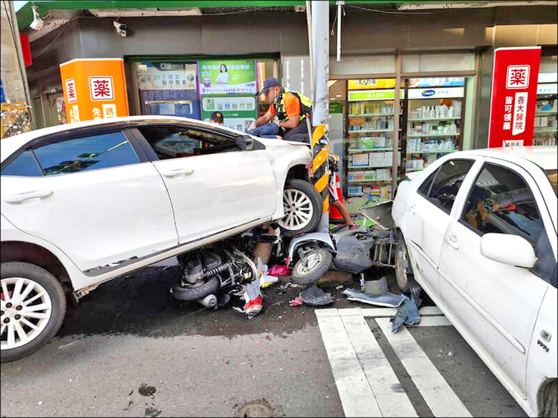 此外,肇事車輛還險些撞進一家藥妝店,造成店家的廣告燈箱毀損,警方獲報趕抵逮人,查扣兩支球棒。