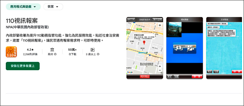 婦女團體建議提高警覺,並可下載「110視訊報案」APP,可在緊急時刻報案。(圖取自Google play)