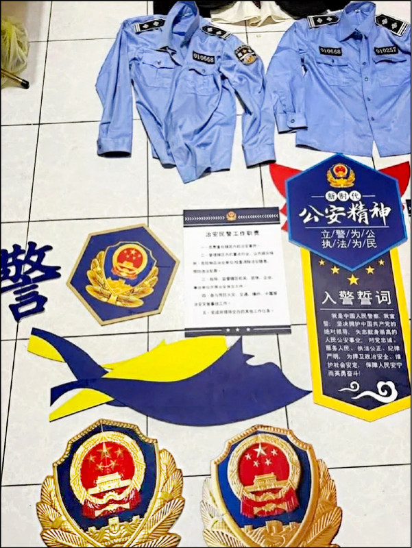 詐騙集團穿中國公安制服,詐騙香港民眾。(警方提供)